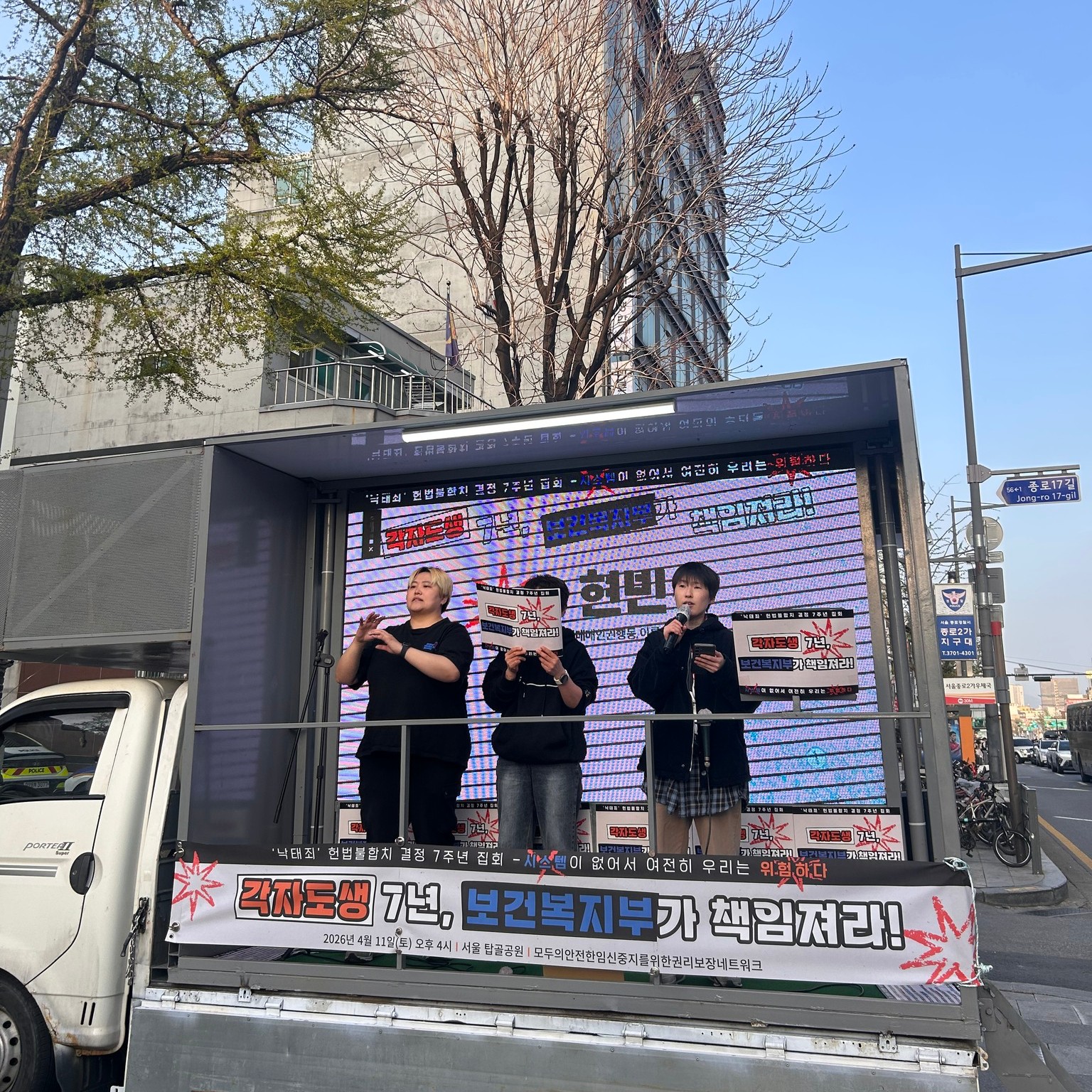정부와 복지부는 임신중지 권리보장 요구를 외면할수록, 당신들이 임신중지 혹은 출산을 희망하는 여성과 태아의 삶도 더 열악하게 만든다는 사실을 잊지 마십시오. 출산할 수 있는 환경은 당사자가 안전하다고 느끼는 공간에서 만들어지기 때문입니다. 그래서 사실 안전한 임신중지는 출산에 필수적입니다. 우리는 국가가 정한 협소한 조건 없이, 우리의 몸을 수단으로 사용하려는 강제 없이, 우리의 몸의 일들을 스스로 결정하고 그에 따른 건강, 안전, 재생산권을 보장받길 원합니다. 그래서 임신중지와 연결된 보건의료체계, 상담, 건강보험, 유산유도제 도입이 필요합니다. 정부와 복지부와 식약처가 7년동안 방치하면서 낙태죄 대신 살인죄로 또 처벌을 의뢰하는 동안, 우리는 우리의 요구를 더 탄탄하게 뒷받침할 힘을 만들어 왔습니다. 지금 이 집회에서 나오는 이야기로부터 비범죄화의 공백을 채워나갈 수 있길 바랍니다.