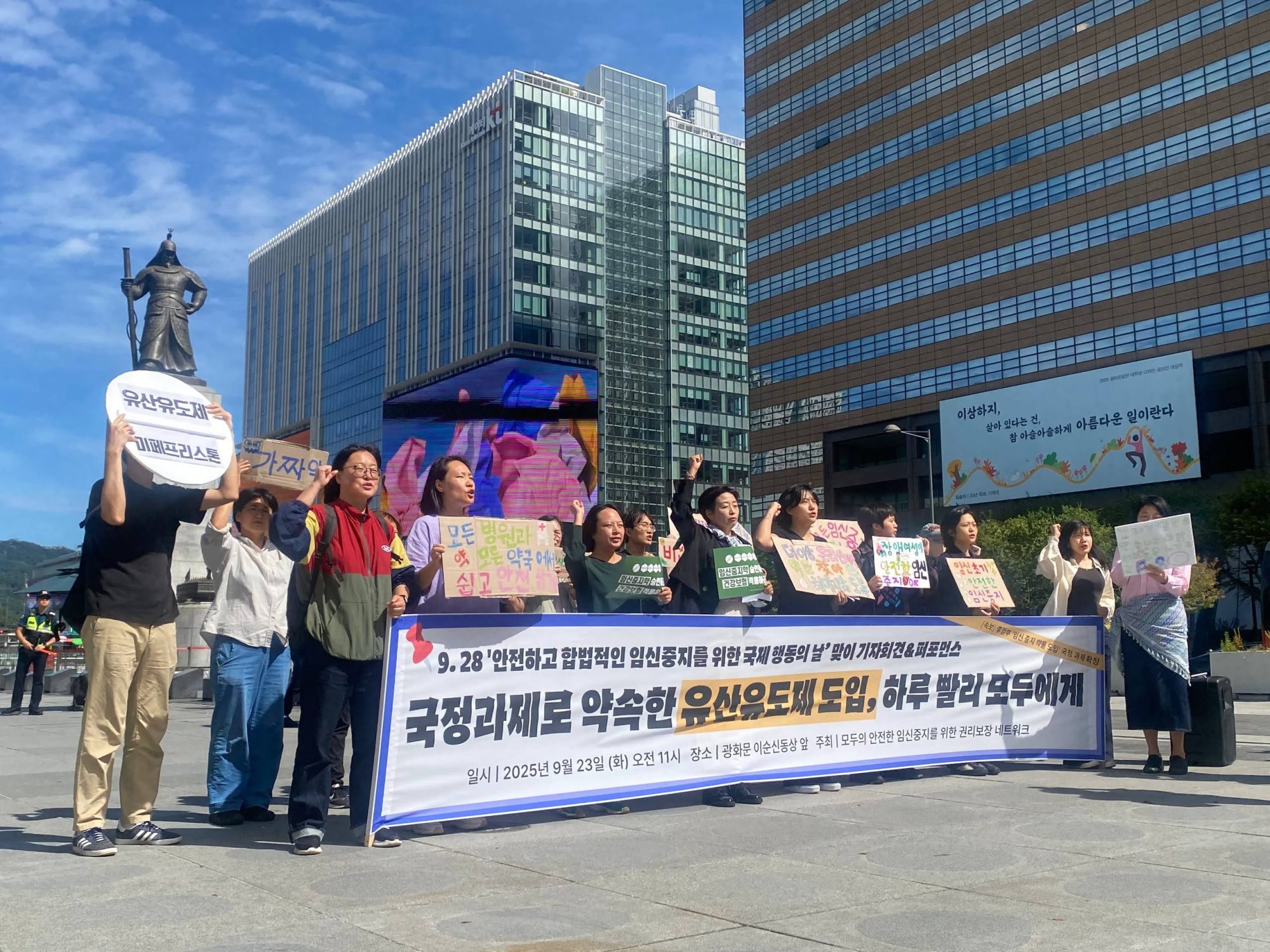 모임넷은 ‘9.28 안전하고 합법적인 임신중지를 위한 국제 행동의 날’을 맞이하여 안전하고 합법적인 임신중지의 중요성을 재조명하고, 유산유도제의 도입을 촉구하는 한편, 접근성 확대를 요구하는 <국정과제로 약속한 유산유도제 도입, 하루 빨리 모두에게!> 기자회견을 9월 23일(화) 오전 11시 광화문 이순신 동상 앞에서 진행했습니다.