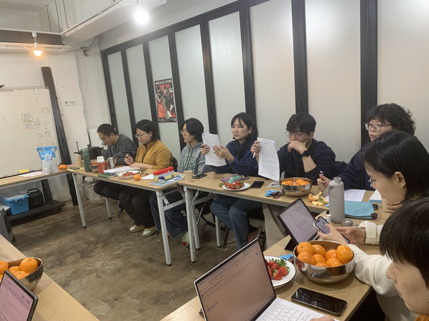 성매매 집결지 재개발 상황에서의 고민, 공공성 확대.전체 노동 조건 개선과 같은 큰 차원의 요구들은 어떻게 가능할지에 대한 고민을 나누었고요. 여성들의 성원권 확보를 위해 필요한 지원과 돌봄 제도에 대한 요구를 작은 것부터 쌓아가는 실천이 필요하다는 이야기도 나누었습니다.