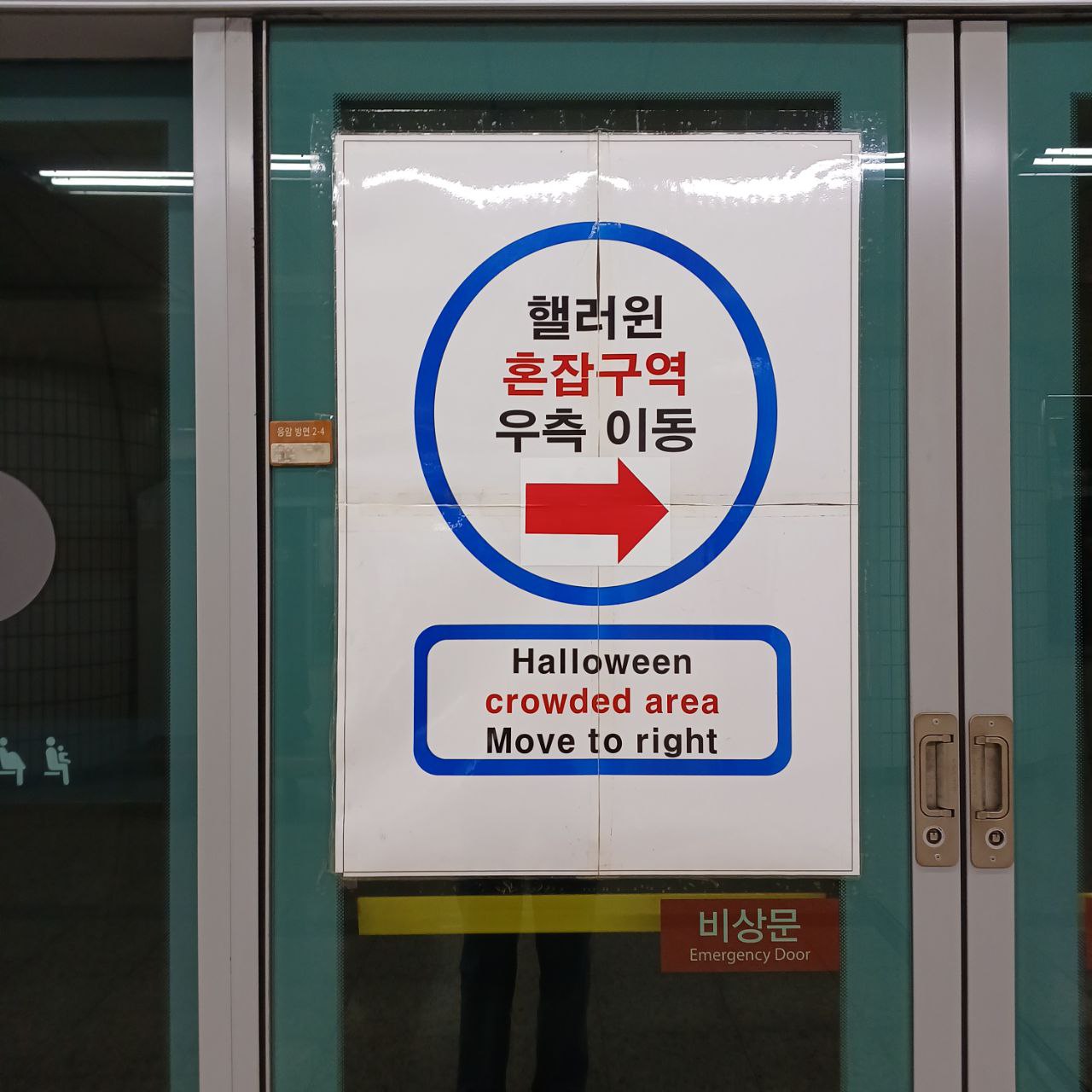 역 인근의 전광판에 불을 밝히며 반짝이는 여러 패션브랜드 광고 사이에 뜨는 짧은 공익광고가 인파밀집 시 안전사고 예방을 위한 안내 사항을 담고 있어 이번주가 이태원 참사가 있었던 10월 29일을 다시 맞는 전 주의 주말이라는 것을 새삼 알 수 있었습니다.