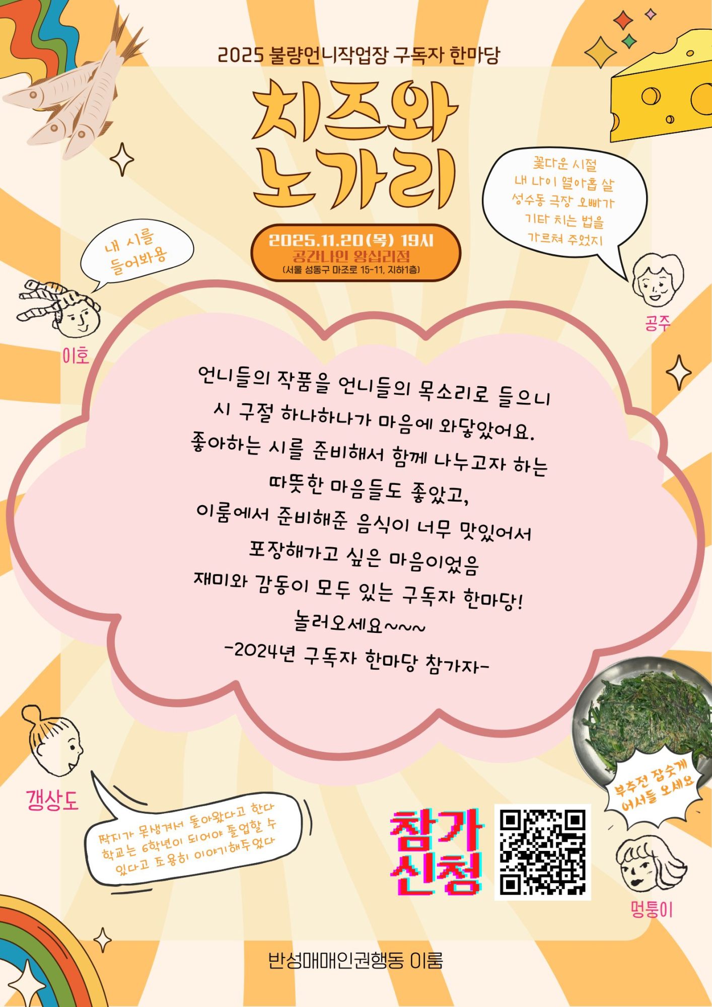 [2차 홍보] 2025 불량언니작업장 구독자 한마당 “치즈와 노가리”